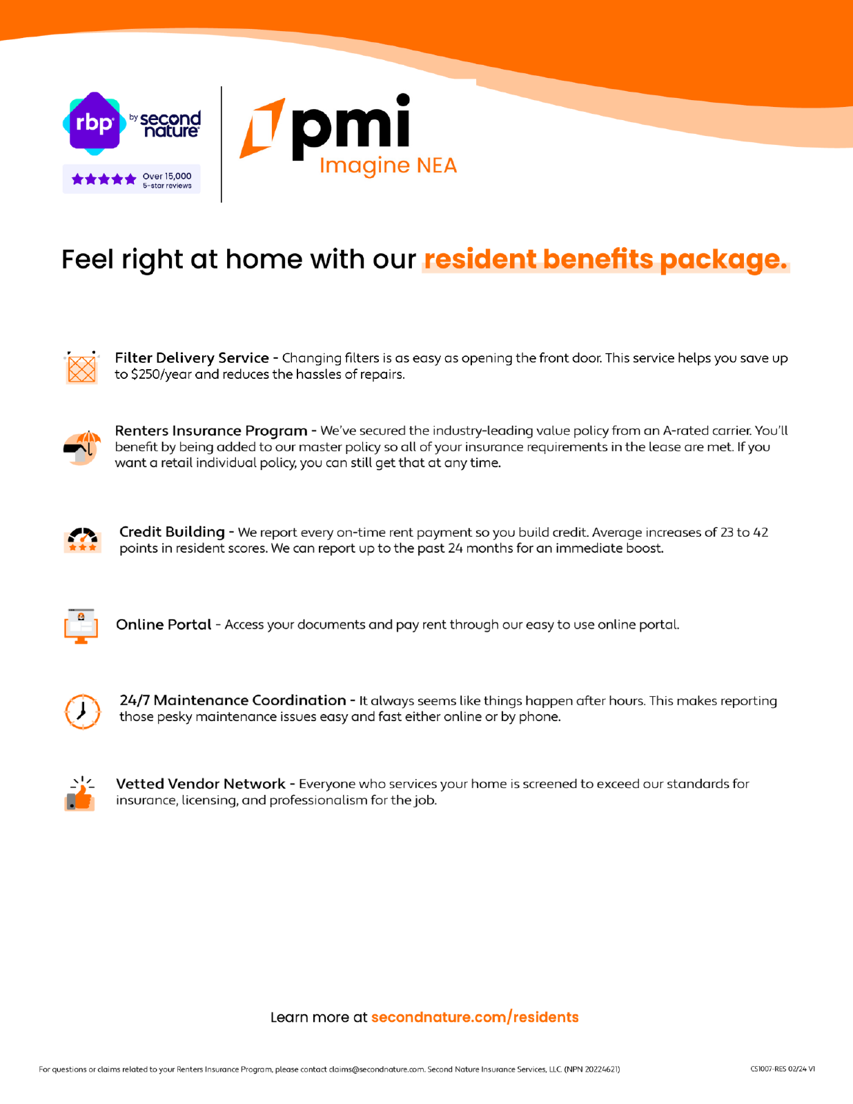 - 12-month lease at current market rent, then month-to-month with a $50 monthly increase if lease not renewed. All Property Management Inc - Imagine NEA residents are enrolled in the Resident Benefits Package (RBP) for $35.95/month which includes liability insurance, credit building to help boost the resident’s credit score with timely rent payments, HVAC air filter delivery, and much more! More details upon application.